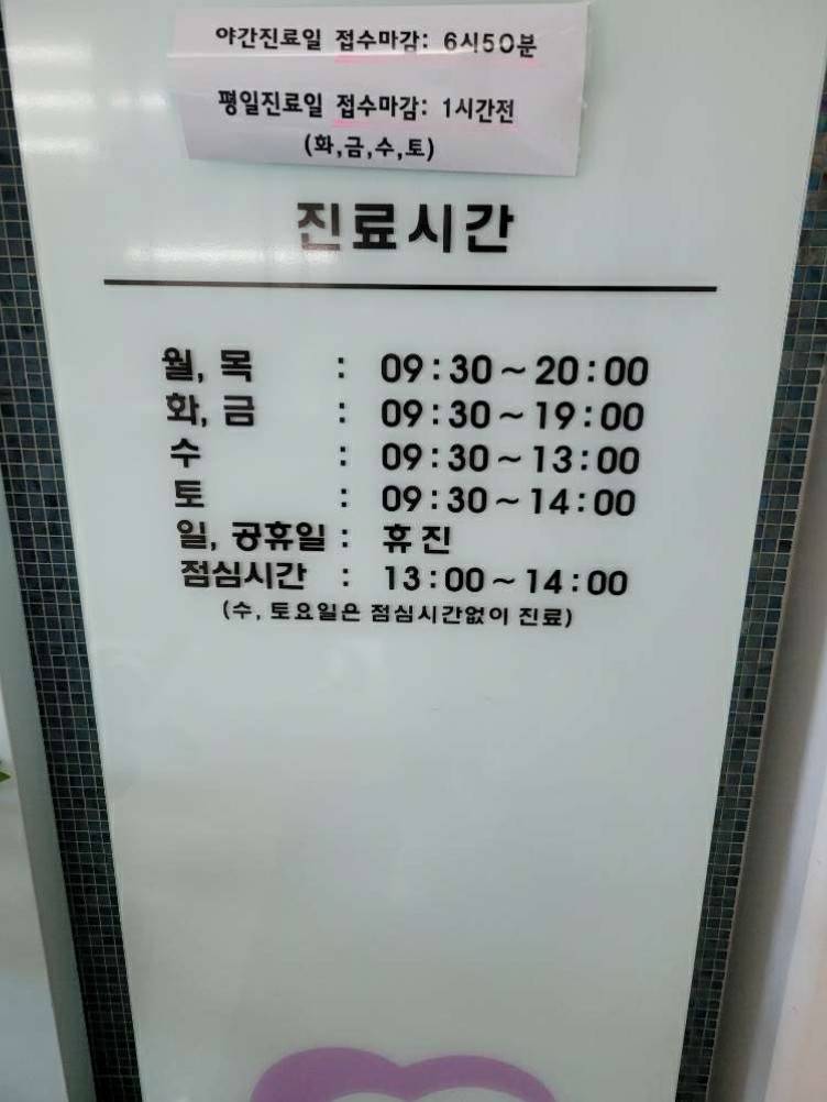 병원에서는 의사선생님이 친절하고 모든 질문에 답변을 자세히 천천히 해주시기 때문에 오랜 기다림을 이해하고 있는 고객들이 많습니다. 하지만 목요일은 오후 1시까지만 운영되고 있어 안내가 제대로 안되어있어 헛걸음하는 경우도 있어 참고해야 할 점입니다.